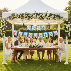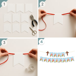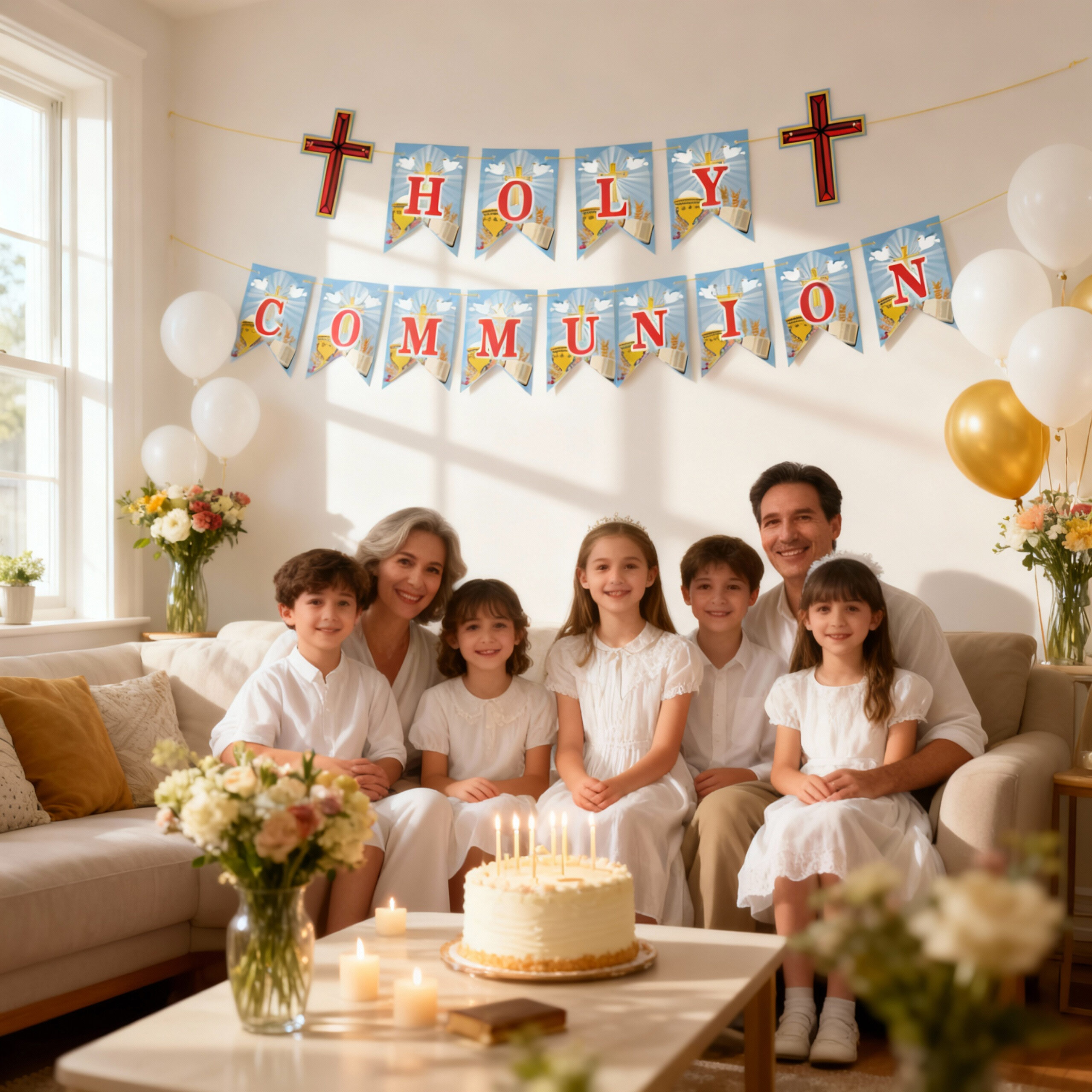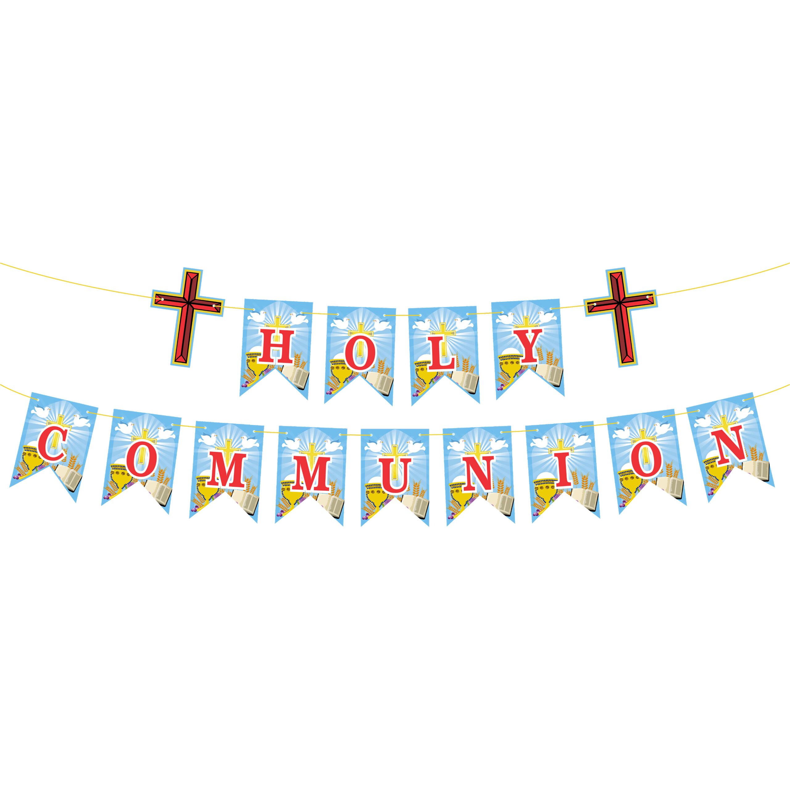Forget the hassle of threading letters—this garland is pre-strung and ready to display instantly. Hang it above the cake table, drape it across a mantelpiece, or use it as a focal point for family photographs. Made from durable, high-quality materials, this banner is built to last through the party and can be carefully stored as a treasured memento of this spiritual day. Create a beautiful and memorable setting for your First Communion party with this essential piece of religious decor.