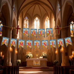 Celebrate your child’s profound religious milestone with this beautiful First Holy Communion Banner. This elegant decoration set is the perfect way to honor the momentous occasion of receiving the First Holy Eucharist.